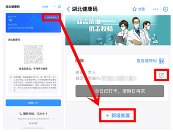 7.点击“切换申请人”按钮,选择“新增家属”,再次进入“全省健康码申请”信息填报界面,据实填报家属信息即可为家属申请健康码。屏幕右侧书写按钮可以修改申请人健康信息,每日限修改一次。