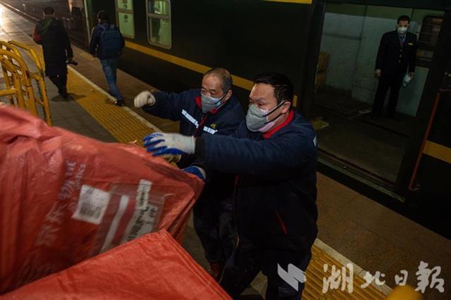 几分钟前,这趟车将110余件医疗物资运抵武汉。武昌火车站行包车间的10多名装卸工早早守在站台上,他们要赶在10分钟内,将这批物资卸下转运。