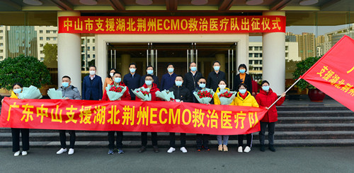 2月14日,我市第三批援湖北的医疗队18人,出征援荆州。这批队员,有些甚至是出发当天才接到的紧急通知。2月18日,中山派出的第4批医疗队,9人均来自中山市人民医院。他们带上了救命神器ECMO,千里奔袭荆州救治危重症患者。