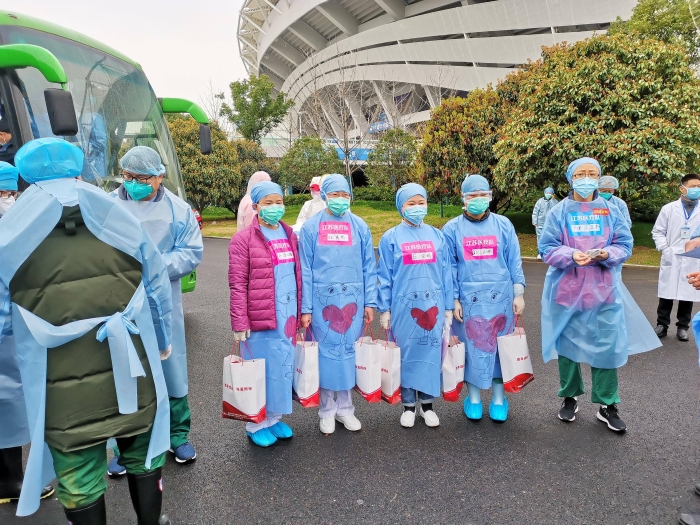 第五批江苏援湖北医疗队省队有302名队员,其中300名医护人员来自于全省10个地区的70多家二级和三级医院。2月12日下午接到接管武汉开发区体育中心方舱医院二舱任务后,医疗队立即开展全流程演练,快速进入临战状态。作为医疗队唯一的经历过多次重大传染病救治任务的专家,南京市第二医院副院长、主任医师杨永峰在培训医疗队员同时,还对方舱流程进行优化设计和改造,提高了防护安全水平和医护交班工作效率。