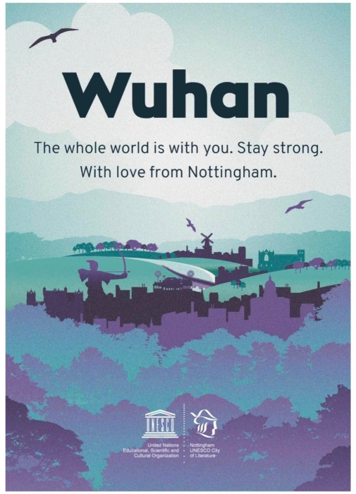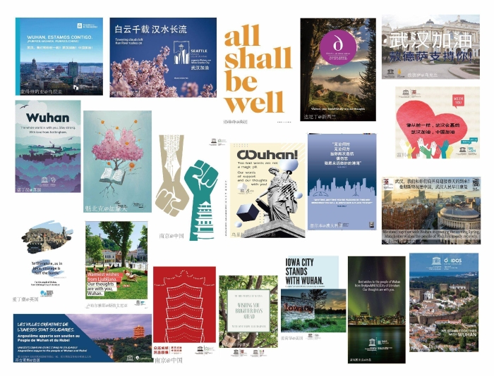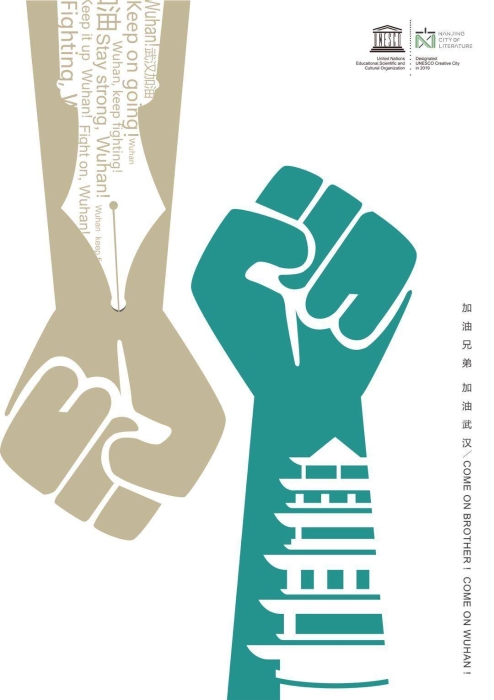 在联合国教科文组织创意城市网络中,南京是“世界文学之都”,武汉是“世界设计之都”。新冠肺炎疫情发生之后,在中国联合国教科文组织全国委员会指导下,南京文学之都促进中心倡议世界各地“文学之都”城市联合起来,以公益海报的形式,为身处疫情中心的武汉送上文学祝福。这是南京以创意城市网络成员的身份,首次在“世界文学之都”领域发声。