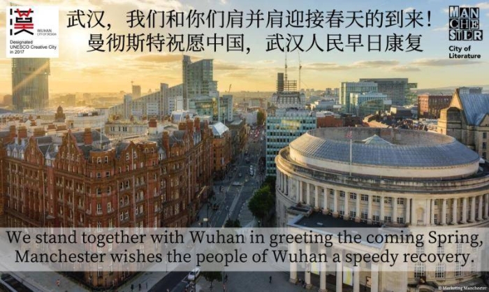 We stand together with Wuhan in greeting the coming spring, Manchester wishes the people of Wuhan a speedy recovery.