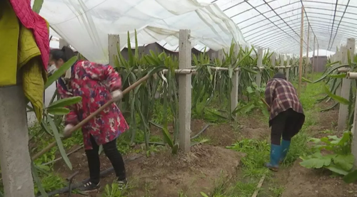 2日,记者在荆州市丰泽园农业股份有限公司农业园蔬菜大棚内看到,工人正在锄草。公司经理樊斌介绍,丰泽园已经开始复工,但受疫情影响,每天只能雇请7—8个工人,主要从事整田除草、栽种瓜苗、采摘蔬菜等工作。