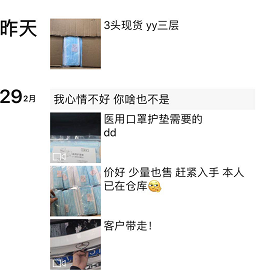 李先生说,微信沟通中,对方给出每个价格是2.2元,还发来了资质证书和库存图片。李先生没多想,就马上和几个朋友一起“拼单”,共买了21500个口罩。“一共分了5笔,当时总共价值是给了4万多的,而且他开始的时候是有1000多个口罩给我,我的戒心就放低了。”