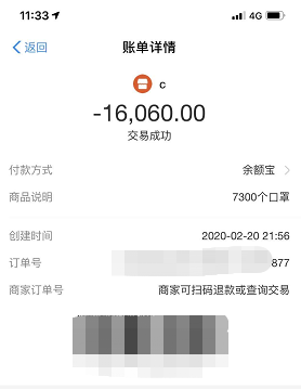 李先生说,没想到对方发了第一批口罩之后,就再也没有发货了。“剩下的他说接下来两天会给完那些货给我,但后面我找他联系他,就一直在忽悠我。”后来,李先生找对方,也只退了1万多款项,现在自己电话被拉黑,微信也不回。