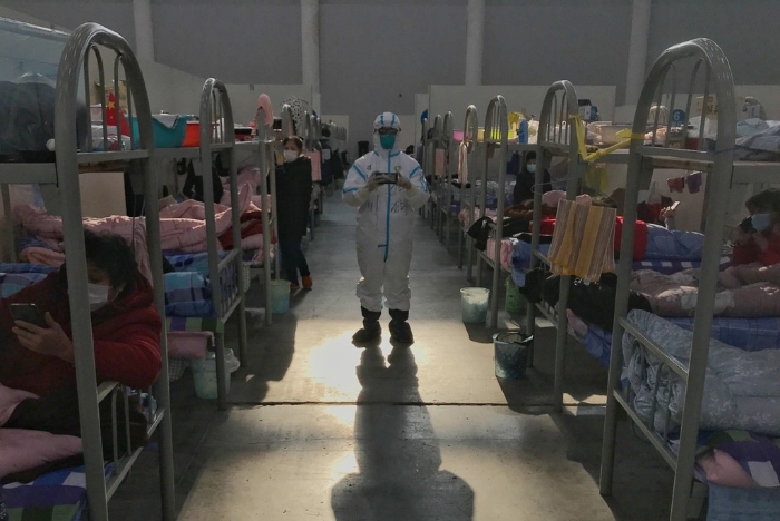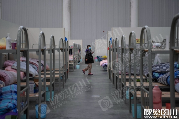 3月4日,四川日报记者杨树在汉阳方舱医院内拍摄。