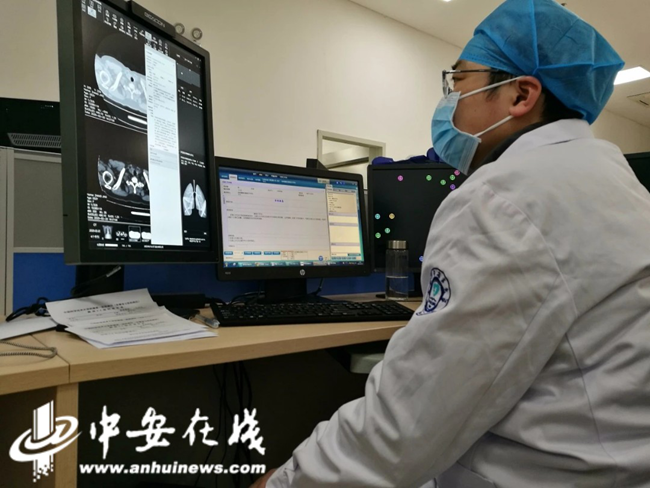 在中科大一附院南区,影像科医生正在使用新冠肺炎影像辅助诊断平台