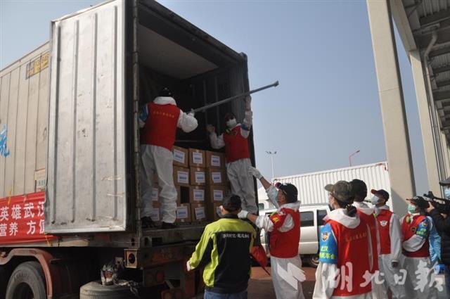 3月4日晚,一箱箱冷冻蔬菜被装上冷链车,星夜驰援武汉。此时,一条招募“搬运工”的信息在志愿者群中响起,40名互不相识的志愿者踊跃报名。3月5日,他们按约定的时间,分别前往指定的4家医院等候冷链车的到来。(湖北日报来稿)