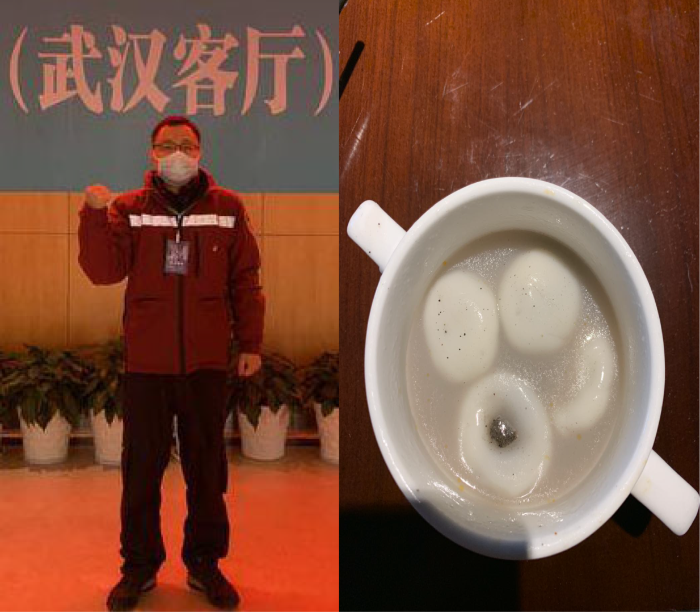是的,你没听错,是一“杯”汤圆!这里是武汉,诺亚宾馆,我的身后就是武汉最大的方舱医院——武汉客厅。可能是物资紧缺吧,宾馆的工作人员给我们这些即将走上抗疫前线的医务人员都准备了一份特别礼物——这杯汤圆。