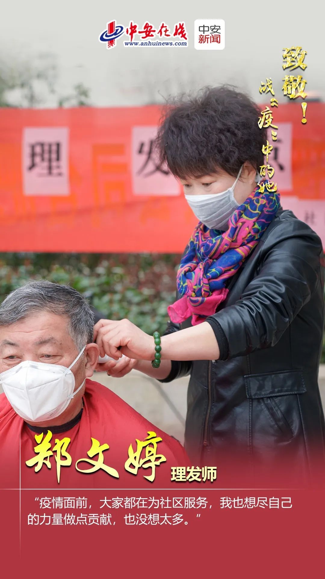 2月24日,合肥市五里墩街道陈村路社区理发师郑文婷免费为居民理发。经过理发师郑文婷的双手,38位社区居民换了新发型,以新形象迎接复工复产生活。