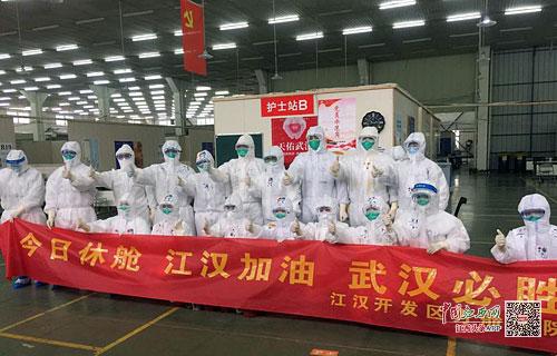 “今天是我在方舱的最后一个班,上午8时30分和晚班同事交接完毕后,得知共有16名病友,其中12人出院到隔离点接受隔离,另外4人因为病情原因转至武汉市中心医院继续接受治疗。”李帆告诉记者:“有几名病友离开前,找到‘知心大姐姐’——胡敏华主任合影留念。感激的话语,轻轻地拥抱,这都是对我们护理工作的最大支持和鼓励,相信他们在不久的将来就可以和家人团聚!”