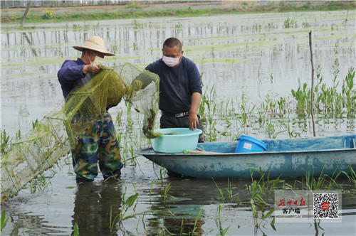 下午2时30分沙市区岑河镇西湖村、东湖村田间及童禾春蔬菜专业合作社、荆楚富民合作社大棚内,不少农民工收稻虾,剔苗芽、打药、施肥忙得热火朝天。