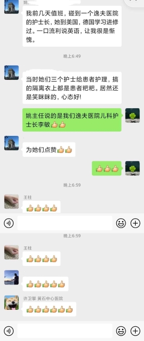 从那天起我对她特别关注,每个班次我都去跟她说话,就这样她开始对我眨眼睛、点头、摇头……直到3月7日凌晨4点,给刘奶奶测生命体征的时候,我看她还没睡,便轻声唤她“奶奶”,没想到竟然听见她应答“嗯”。