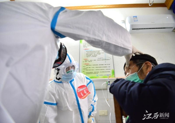 江西新闻客户端讯(江西日报特派首席记者杨继红 通讯员 陈地长)“老人家。保持好心态,您现在各项指标都很好,过几天就可以出院了!”3月10日,广水市第一人民医院感染三病区隔离病房内,陈懿建正在与一位80岁的新冠肺炎患者交谈,这位老龄患者从重症转到普通病房的,现在身体状况很好,即将出院。陈懿建是江西省支援随州市医疗队副队长、赣南医学院第一附属医院副院长。17年前,他曾在广东与“非典”正面交锋;17年后,为抗击新冠肺炎,他战斗在湖北省随州市抗疫最前线。他用实际行动诠释了新时代江西医务工作者的勇毅担当与为民情怀。