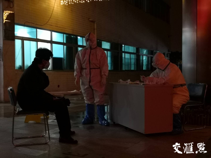 为了和病毒“抢时间”,“关口前移”成为必然选择。3月8日,深夜10点,武汉市经济开发区武汉协和医院(西院)发热门诊外,一张桌子、两把椅子、两名全副武装的江苏疾控援武汉公共卫生队队员。走出一位“发热不排除”病人,队员薛浩、姜荣明迅速上前,在2米之外做起了笔录。