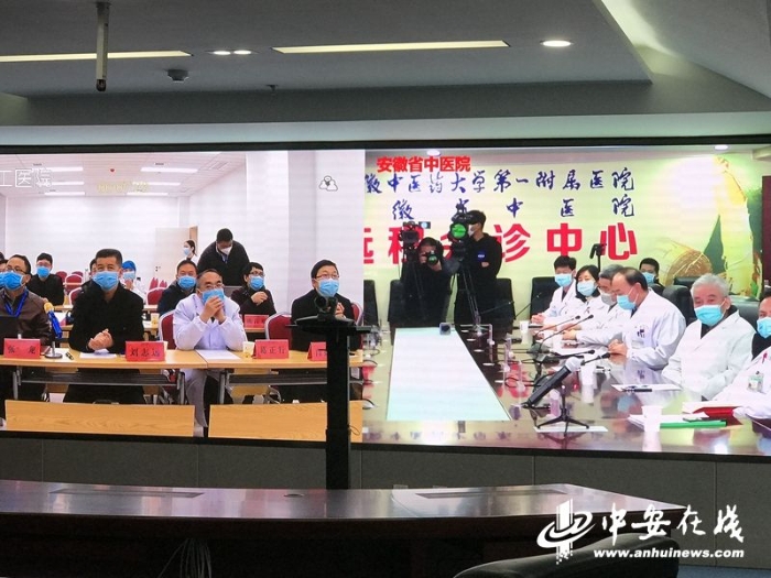 在远程会诊中,安徽省中医药专家指导组组长、省中医院院长杨文明介绍,安徽省累计报告新冠肺炎确诊病例990例,中医药参与治疗978例,占比98.7%。同时,安徽省建立起畅通高效的中西医结合机制,充分运用中医药到疫情预防一线,并且科研助力临床,形成疗效显著的安徽中医药治疗方案。