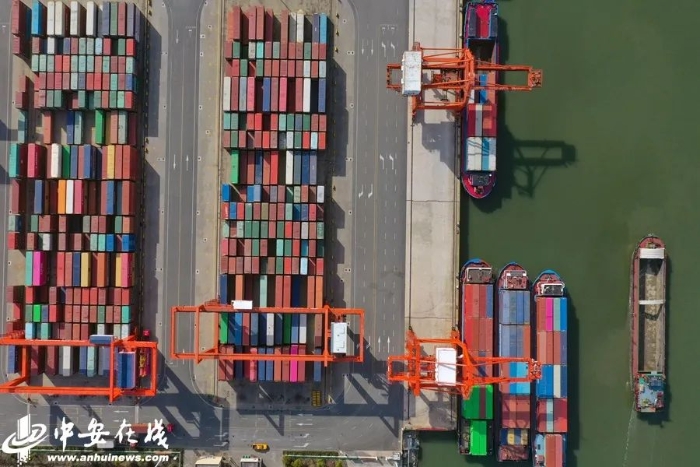 合肥港集装箱码头于2月10日复工,码头一片繁忙。