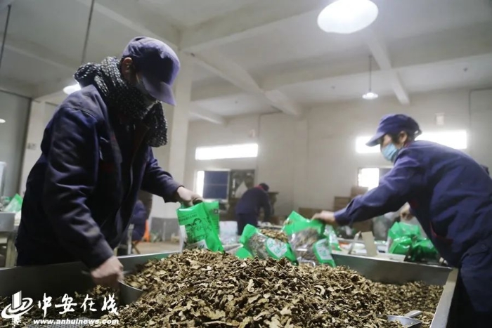 在铜陵禾田中药饮片股份有限公司生产车间,工人们在包装中药饮片。