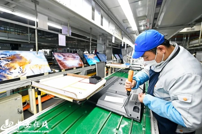 安徽(滁州)康佳电子有限公司复工,工人正在生产线忙碌。