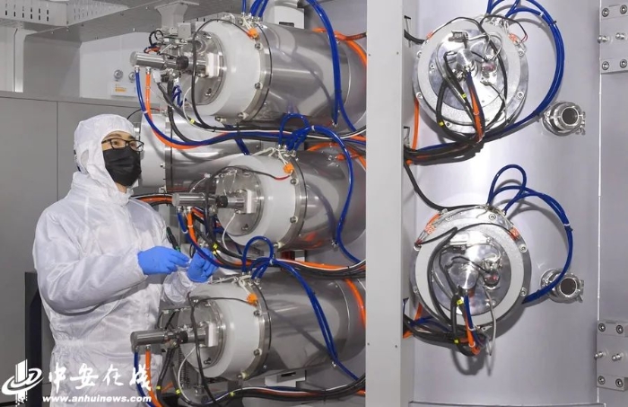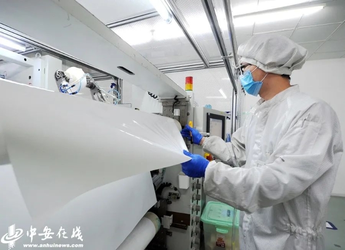 位于六安经济技术开发区的安徽明天氢能科技股份有限公司,工人正在为氢燃料电池核心零部件金属双极板镀膜。