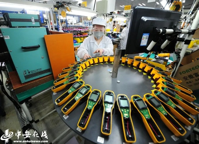安徽世福仪器有限公司的测温仪生产车间 ,工人正在加班加点,为抗疫提供物资保障。