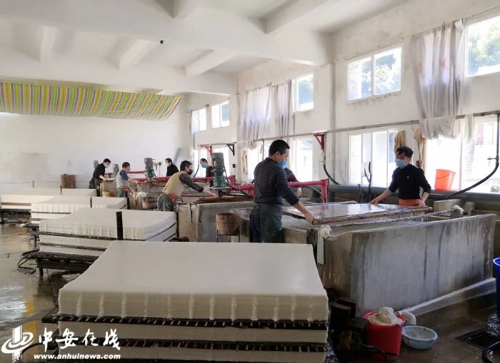 中国宣纸股份有限公司有序复工,捞纸工人正在捞制宣纸。