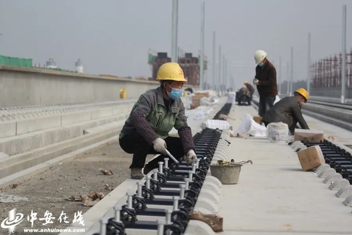 合安高铁四标一分部的工人正在安装轨道扣件,在做好疫情防控的前提下,拉开了项目复工序幕。