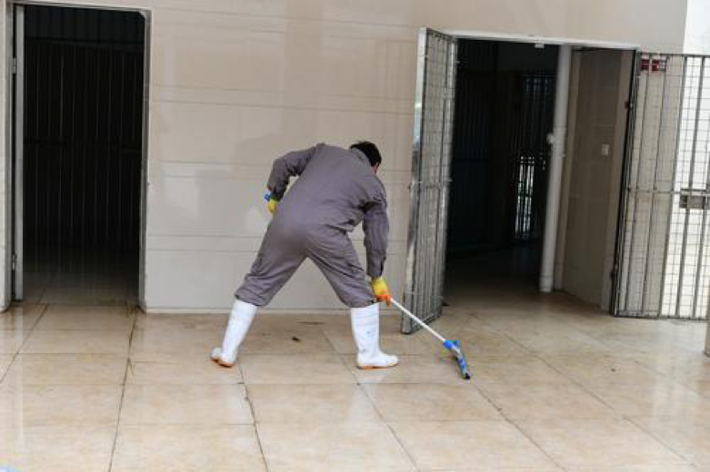 答:每天对大熊猫和其他动物圈舍“一打扫、二冲洗、三消毒”,保证圈舍环境干净卫生,消毒液现用现配;每天对动物饲养用具、用品和丰容设施进行清洁和消毒。