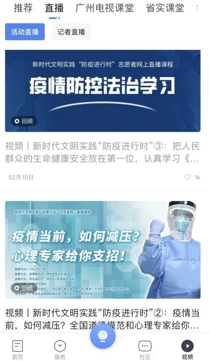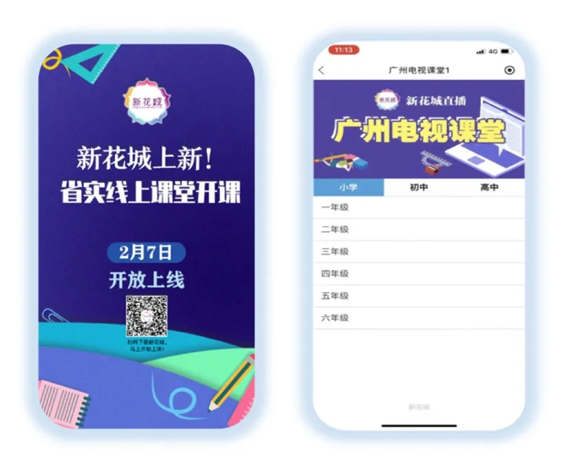 此外,针对高中非毕业年级和义务教育阶段学生,广州市采取开展线上教育的托底措施,在“新花城”客户端推出由广州市教育局主办的“广州电视课堂”,分别于3月2日、3月9日陆续上线高中非毕业年级课程和义务教育阶段课程。广大中小学生不用返校就可在“新花城”看直播“宅家上课”。