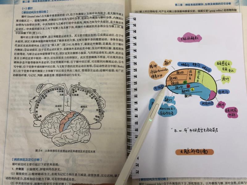 记者看到,笔记中,通过简笔画的方式,将深奥难懂的常见疾病,用图配文的形式进行解释,重点突出、内容清晰。比如,胡徽星会用“屋漏偏逢连夜雨”来形容消化性溃疡,用瞳孔的大小来区分部分意识障碍的原因,用不同颜色来标识大脑的分区等。