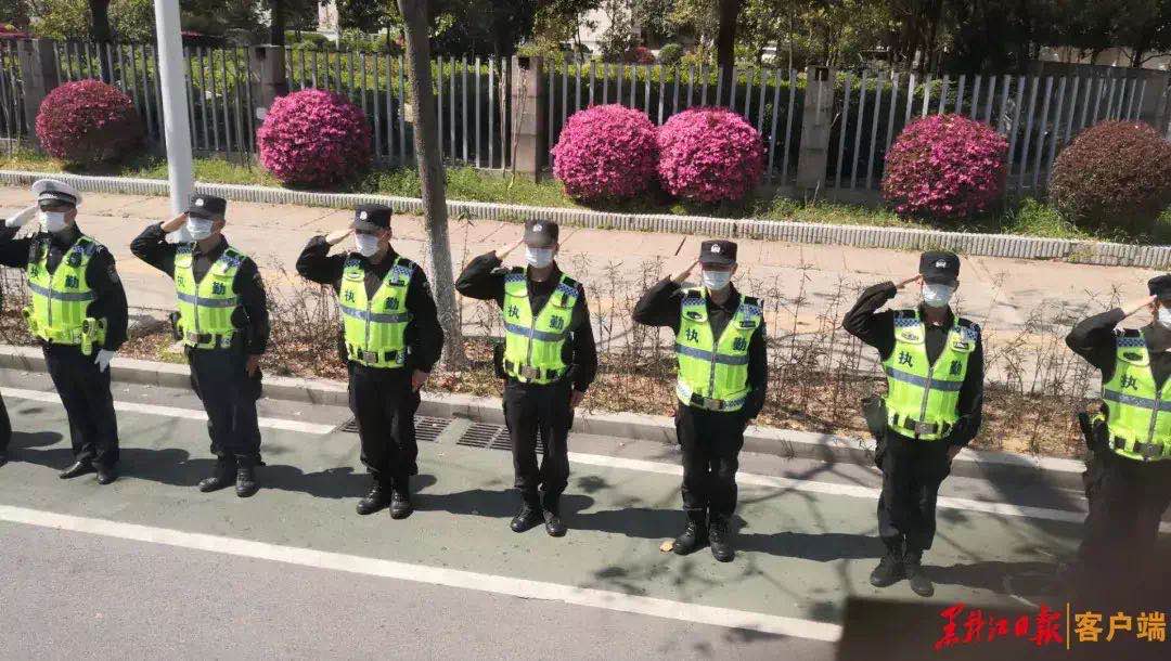 民警齐喊,“立正,敬礼!”