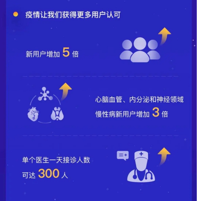 一个多月来,该平台累计访问11.1亿人次,APP新注册用户量增长10倍,新增用户日均问诊量是平时的9倍。