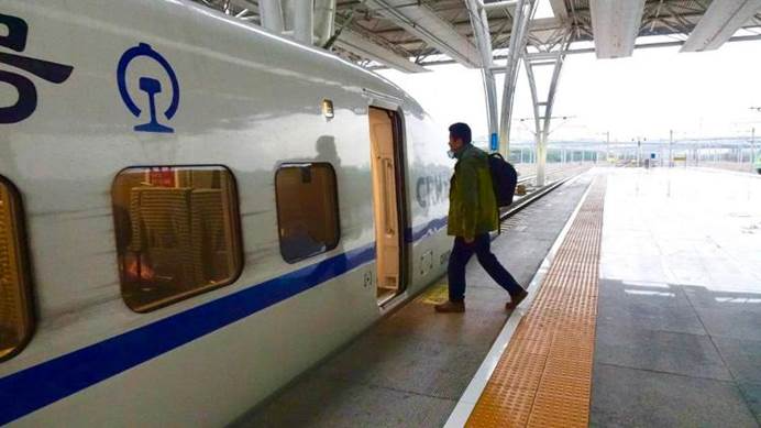 1月23日,武汉封城当天,钟鸣医生逆行救人,在虹桥火车站独自登上开往武汉的高铁列车。中山医院供图