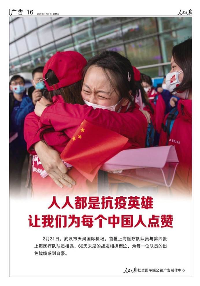 两位不同批次的上海援鄂医疗队员在离汉返沪时乍然重逢、相拥而泣,经人民日报整版刊登,令无数人印象深刻