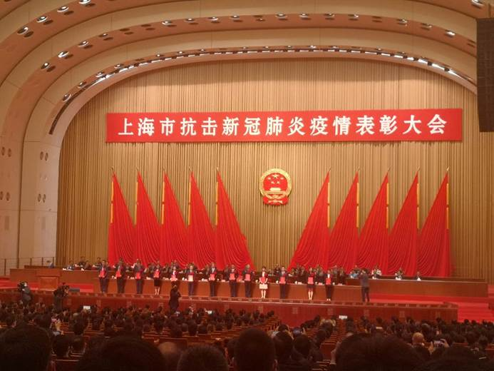 9月29日上午,世博中心红厅。1000名先进个人、300个先进集体和100名优秀共产党员、80个先进基层党组织的代表,胸挂大红花,走上上海市抗击新冠肺炎疫情表彰大会的主席台,接受市委市政府的表彰,接受全市人民的褒奖。