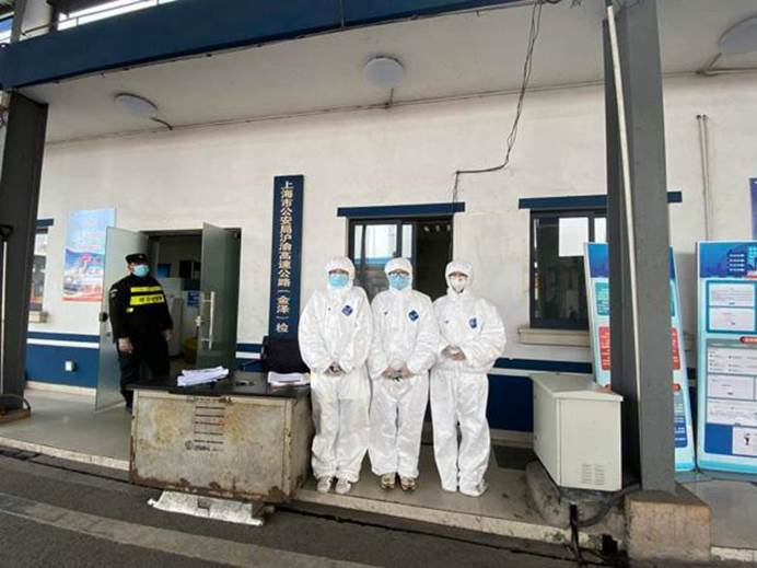陆海燕在高速道口值守。普陀区供图