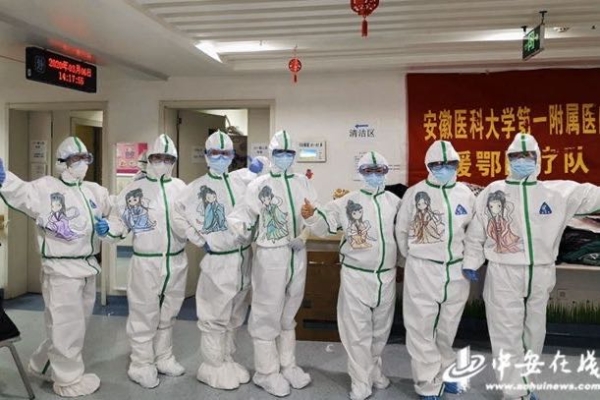 卡通画装点防护服抗疫前线收到特殊的三八节礼物