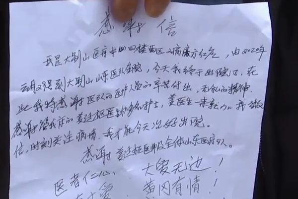 闪电直击|“山东队的医生护士真棒” 患者出院时手写感谢信,还画了两个小心心