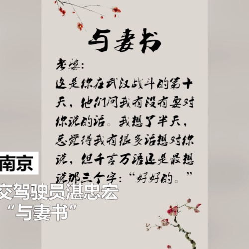 紫金山新闻 · 2020-02-15还记得那个温暖的“朋友圈”吗?妻子驰援武汉第10天他又写下感人“与妻书”
